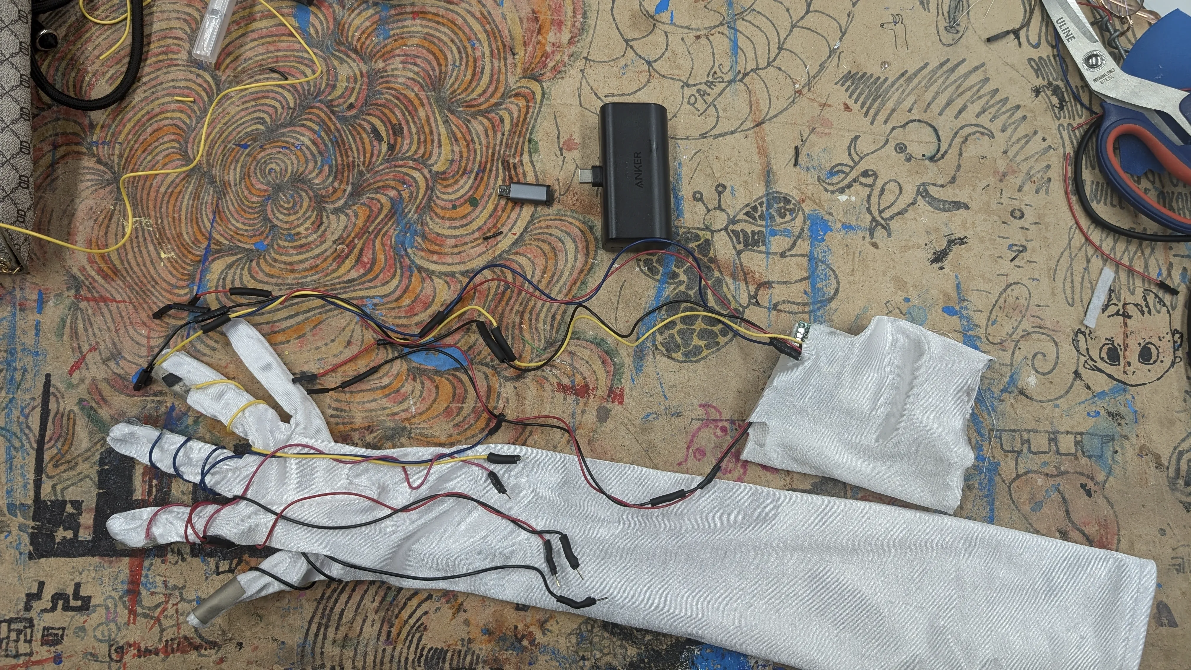 p5.js, ESP32, Shiftr, Satin glove, conductive fabric